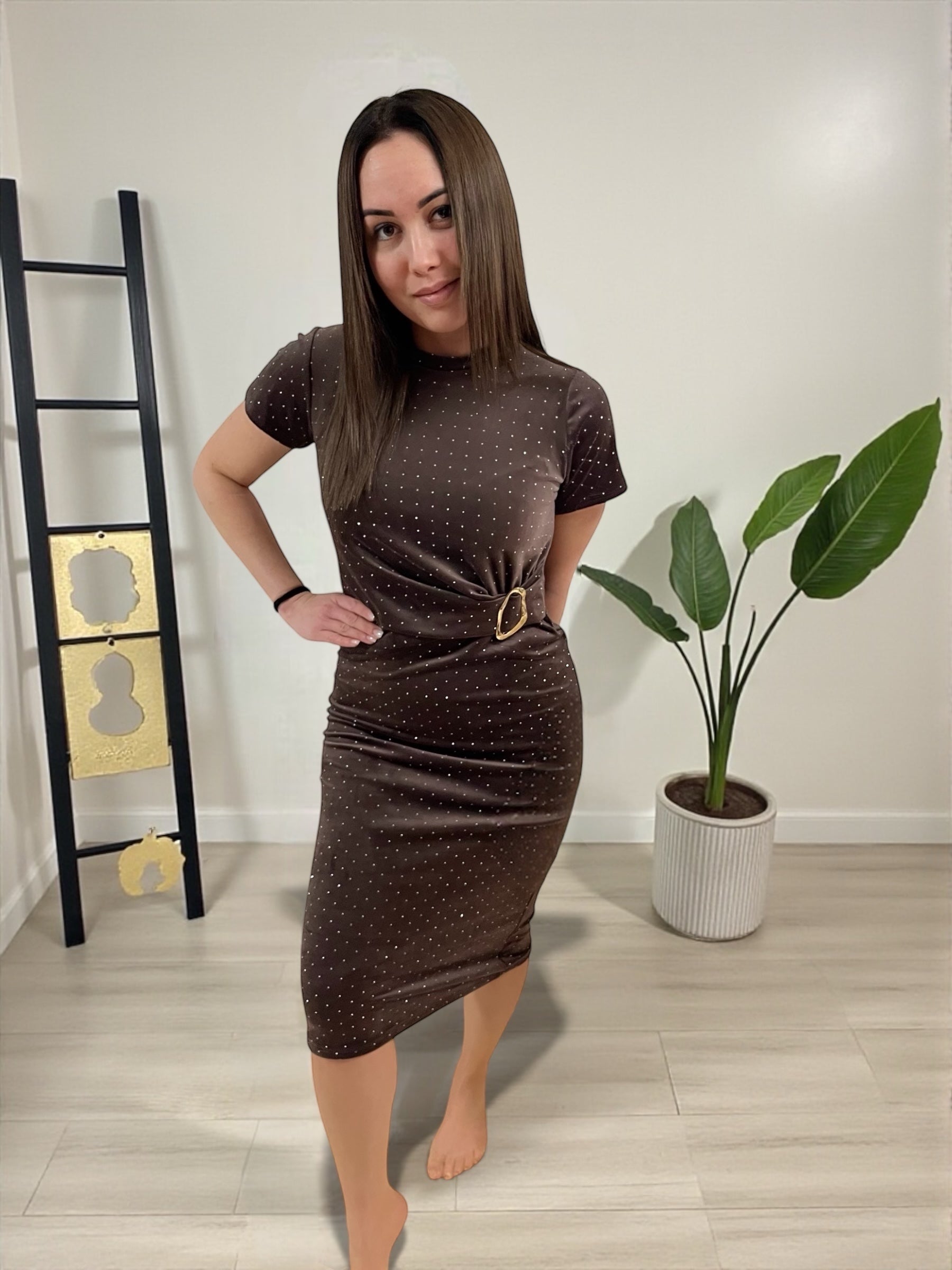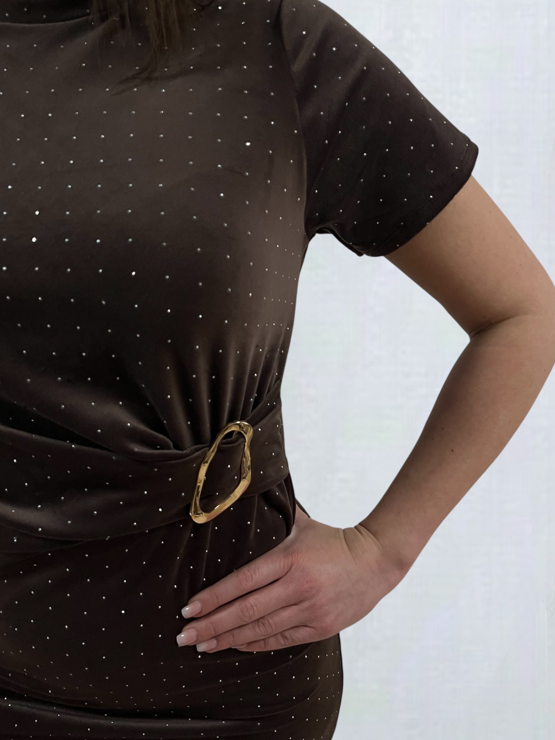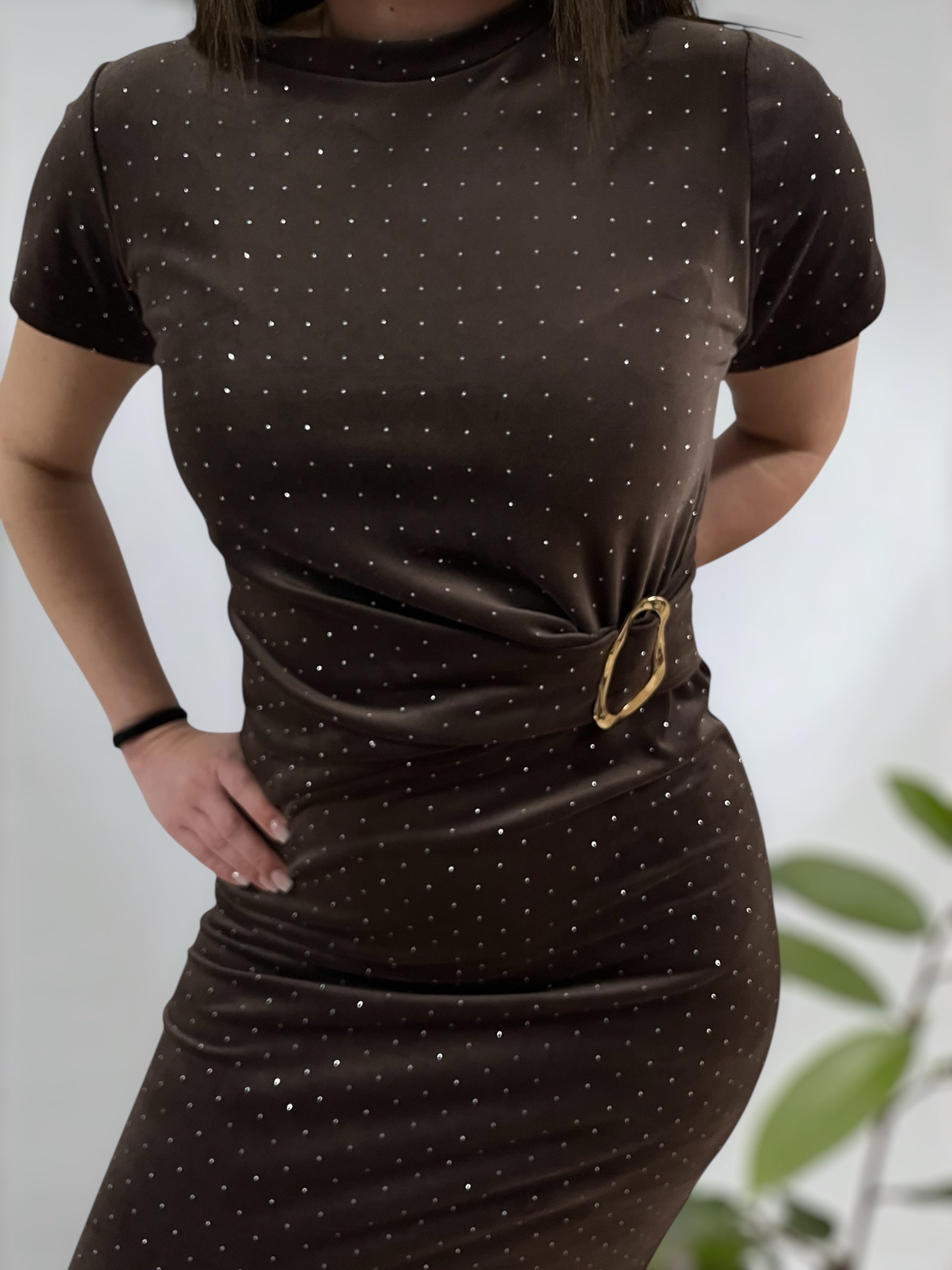 FLASH barna strasszkövekkel díszített ruha