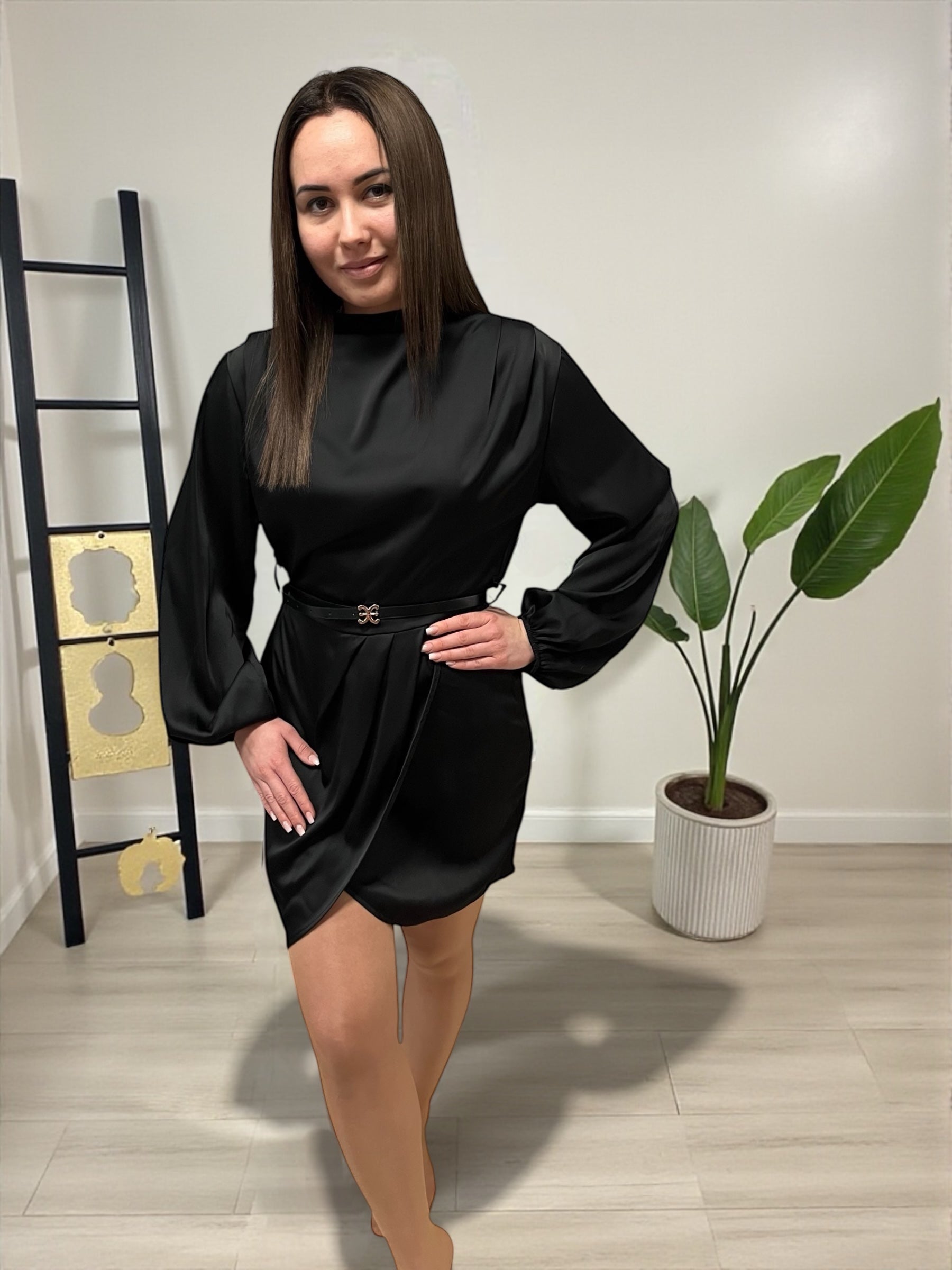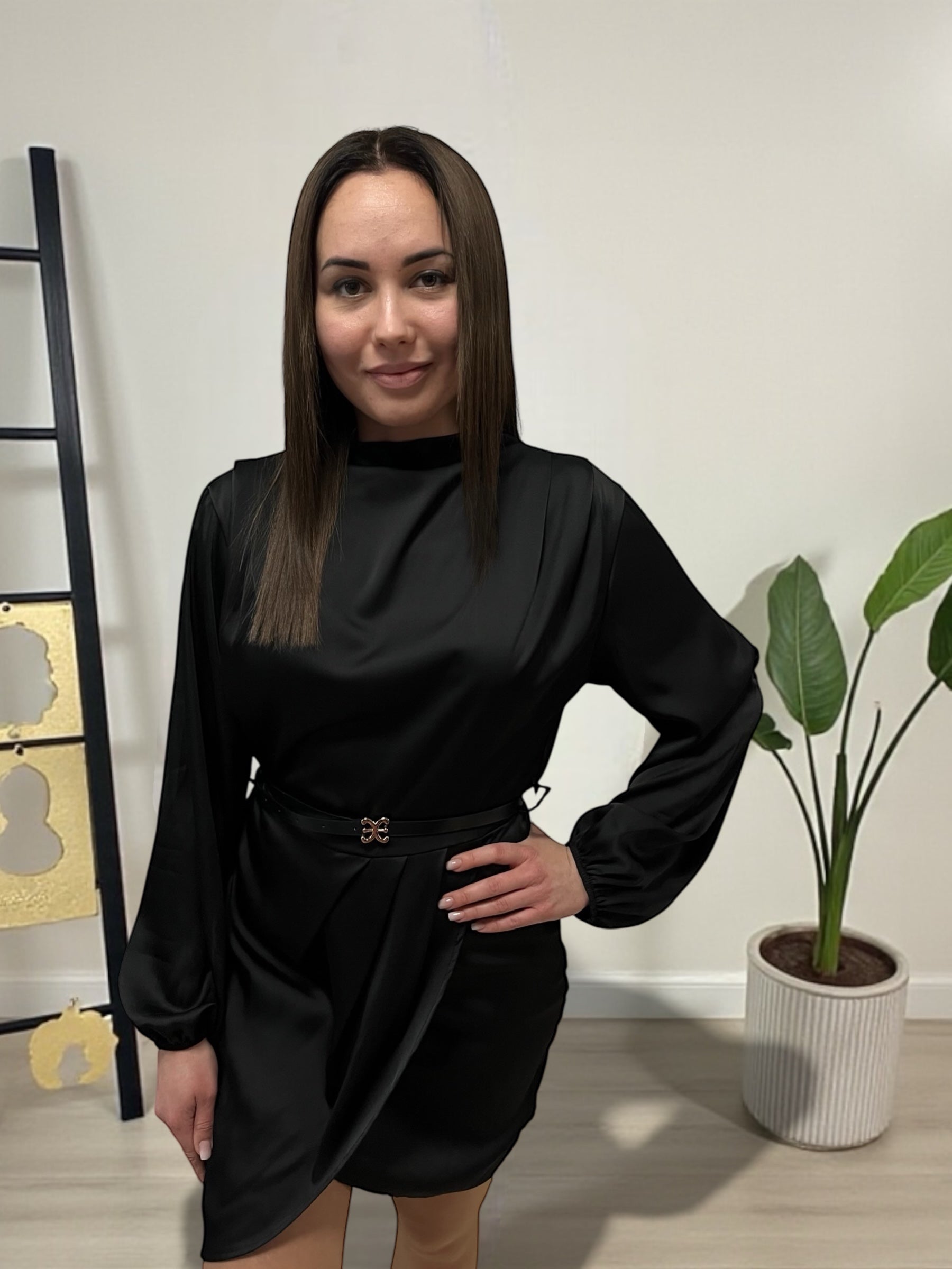 NOVA fekete szatén elegáns ruha
